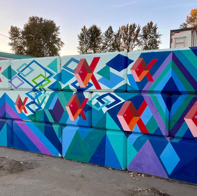 Elvira has received recognition for her talents as a mural artist, owning her own company in Mexico before coming to Canada. We love colour and geometry and use these tools to tell stories of the place and the people who live there.