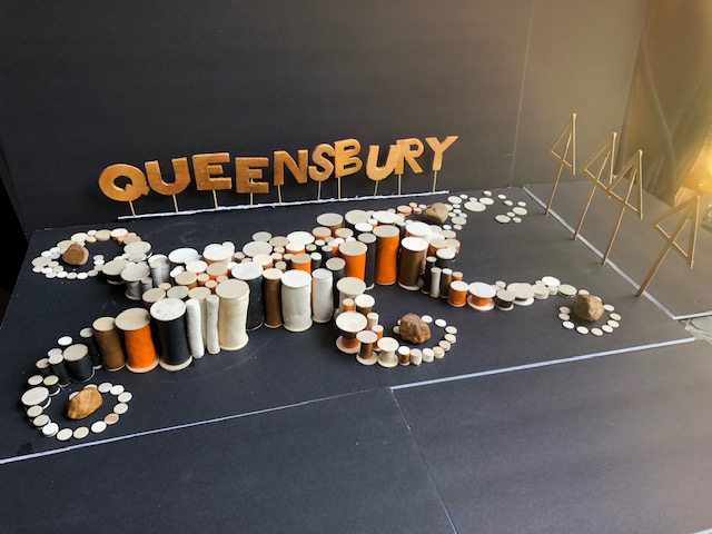 The Harvest concept provides a community meeting place and identifies the place as Queensbury Village. The concept is a commentary on sustainable forest management and community equity while encouraging the public to engage with the space. Students were exposed to a variety of tasks, including, site analysis, concept design, materials assembly, painting, weaving, as well as installation of the tree biscuit paving materials.