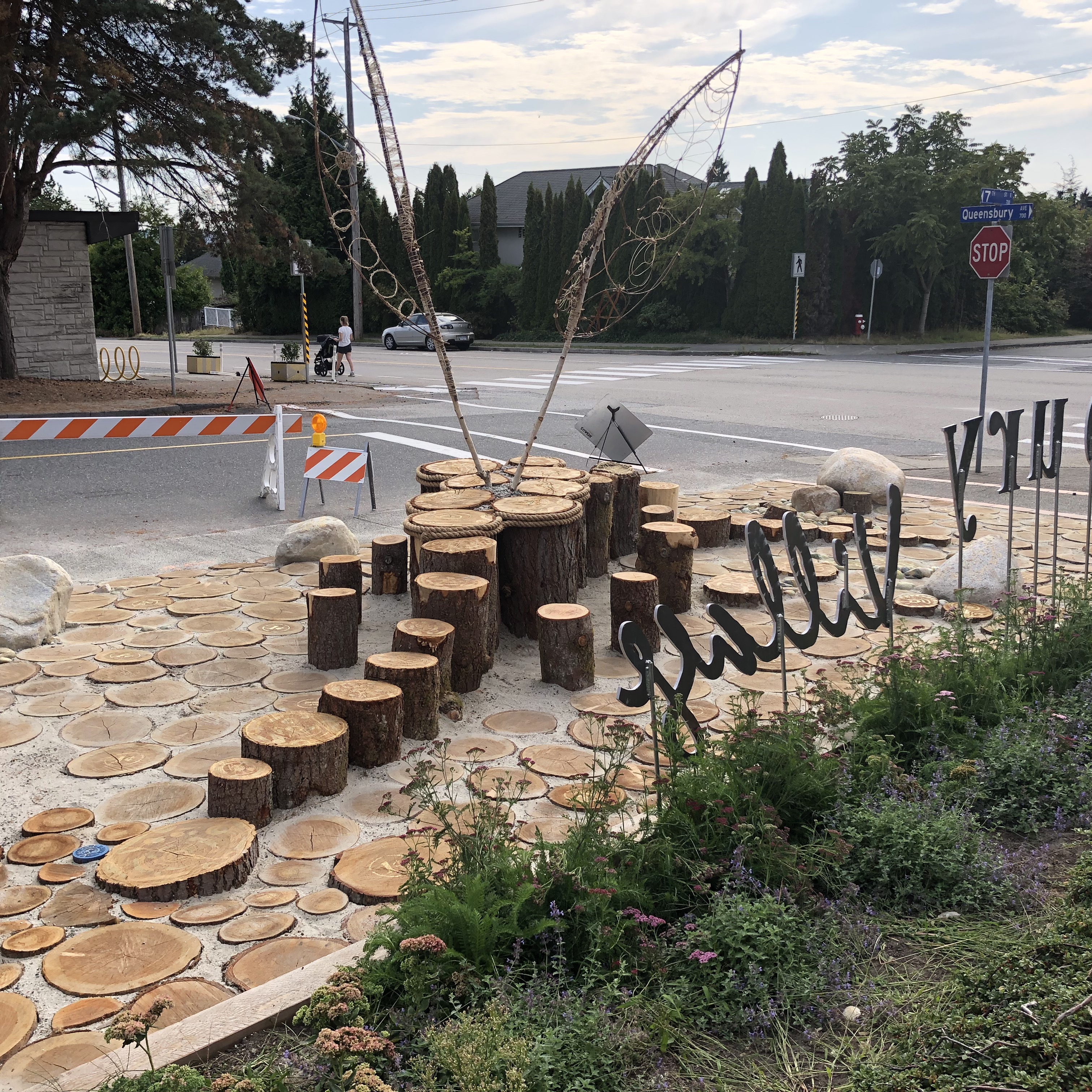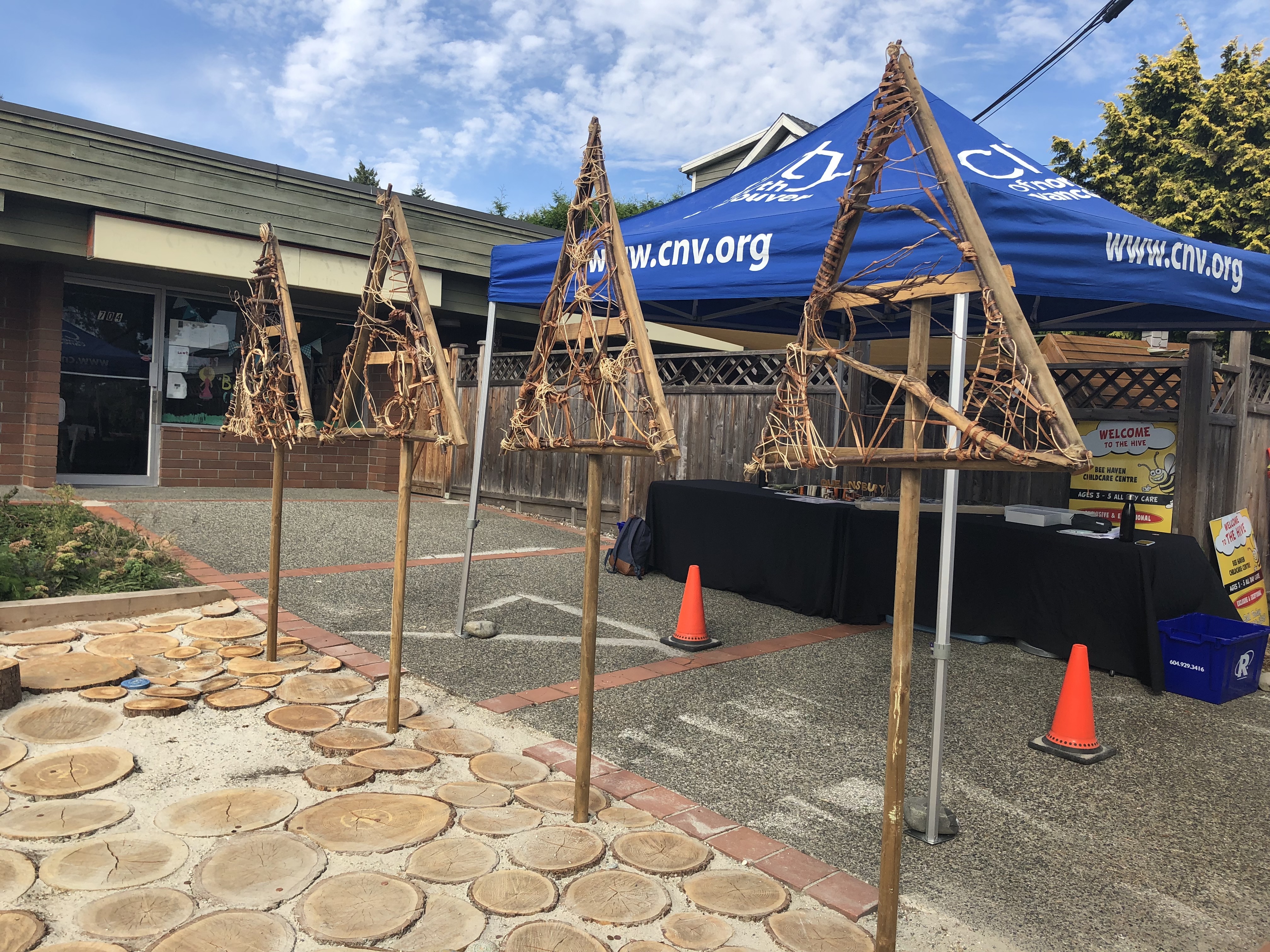 We were hired as artist mentors to lead the project. The space was designed during the summer of 2019 as a part of Studio in the City 12, in partnership with NorthVan Arts and the City of North Vancouver. We came up with the concept, designed the space, collected the materials, and worked with the contractor to complete the installation on time and budget. A First Nations artist/weaver was invited to demonstrate how to use cedar and other natural materials to create weaving designs for the installation.