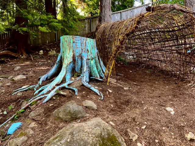Gleneagles grades 4,5,6 classes participated in artist-led painting of the stumps on the rocky outcrop in the remnant forest on the school grounds. The project promoted artistic painting and helped students learn painting skills such as how to hold their brush, different types of brish strokes, blending of colours, and using pant to highlight the natural features that would enhance the stumps. The stumps draw attention to and celebrate the stumps as the “jewels of the fores” and to enhance the rocky outcrop where younger students use imaginative play to develop social skills and to learn about their surroundings.