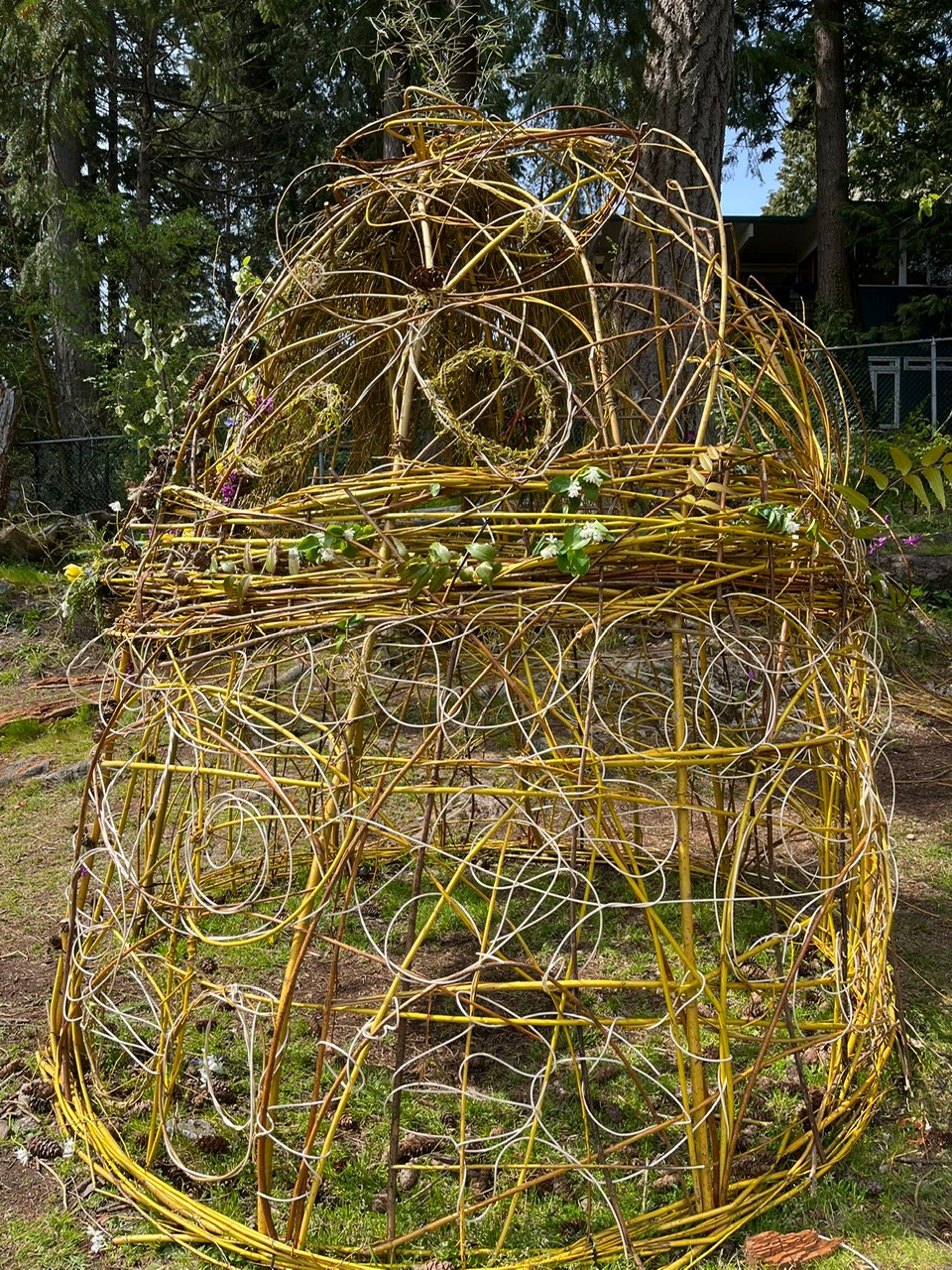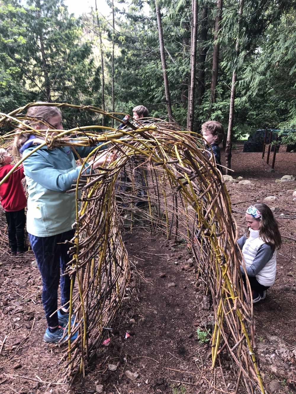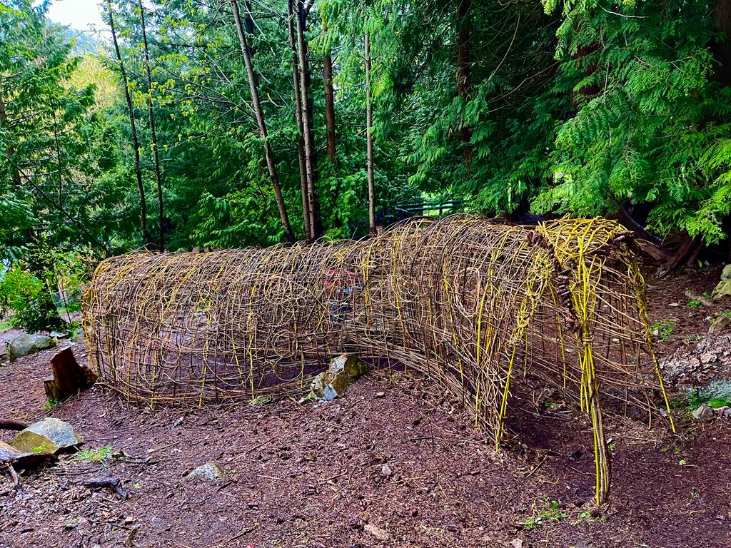 Upon completing the school ground masterplan in 2022, we were invited to work with students in grades 5 and 6 to create Hemispheria structures to animate the play ground and invite imaginative play. A Mother Nature dome perched high up on the rocky bluff provided a watchful eye over the playground, while a willow tunnel engaged with all ages as a new play prop.