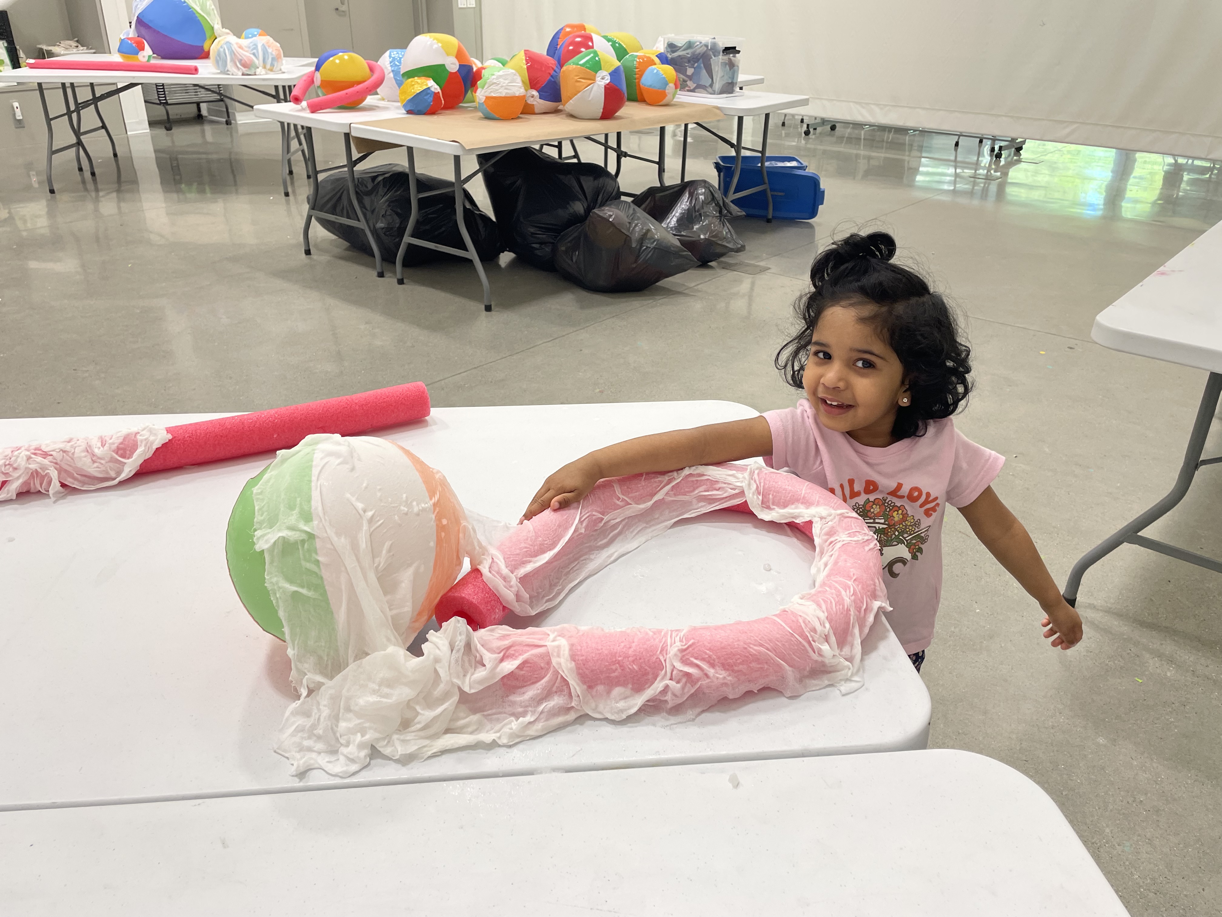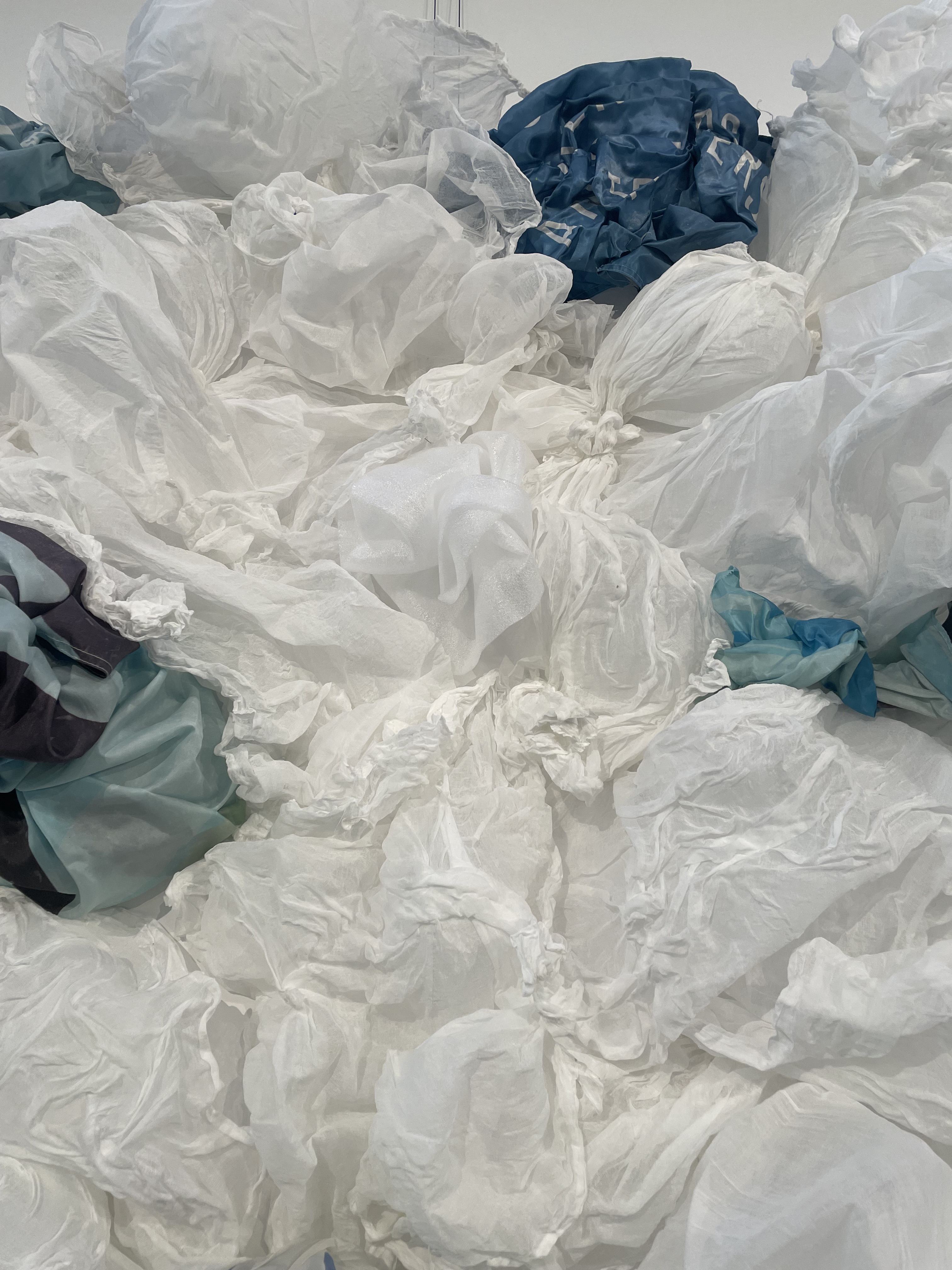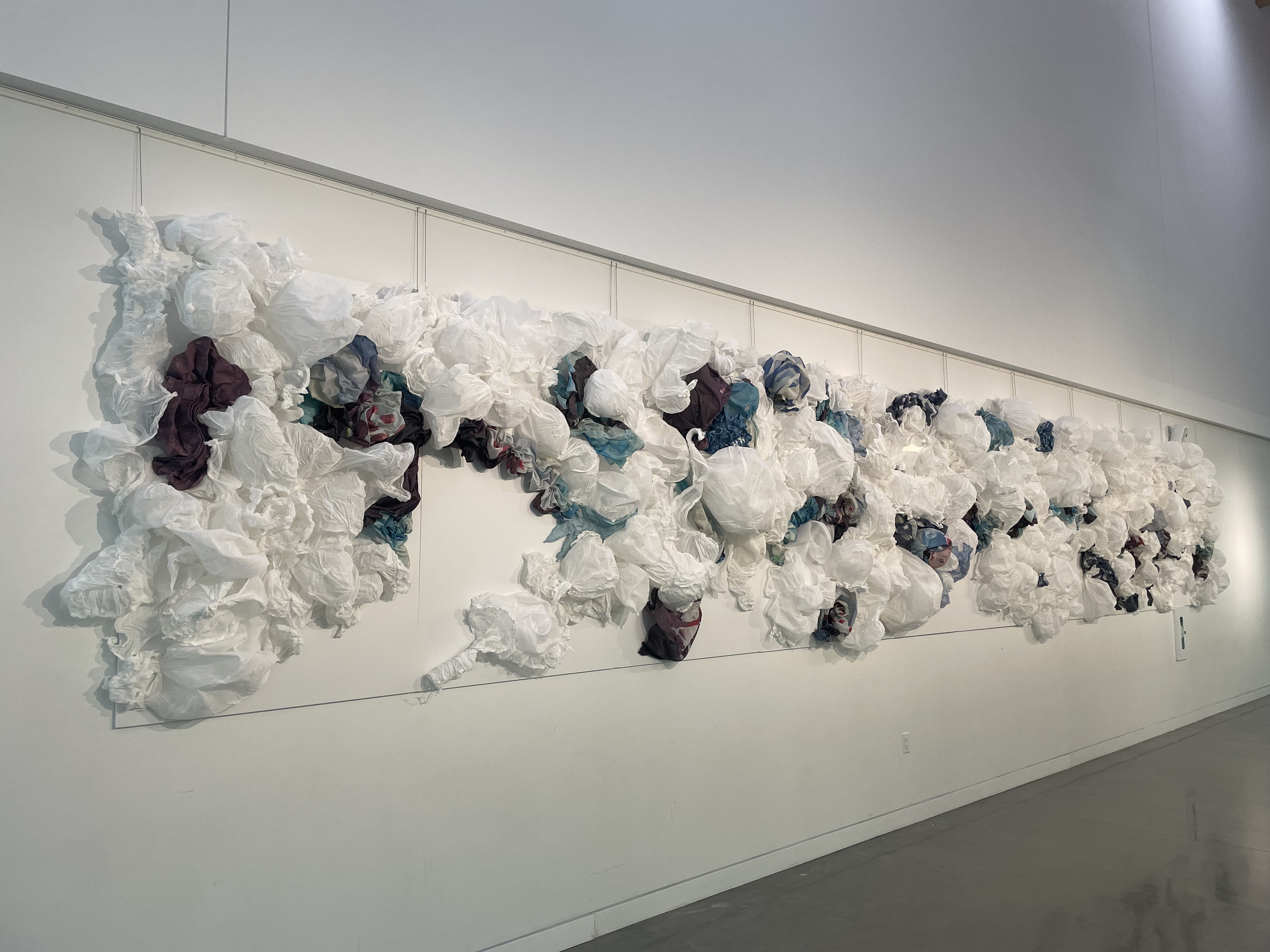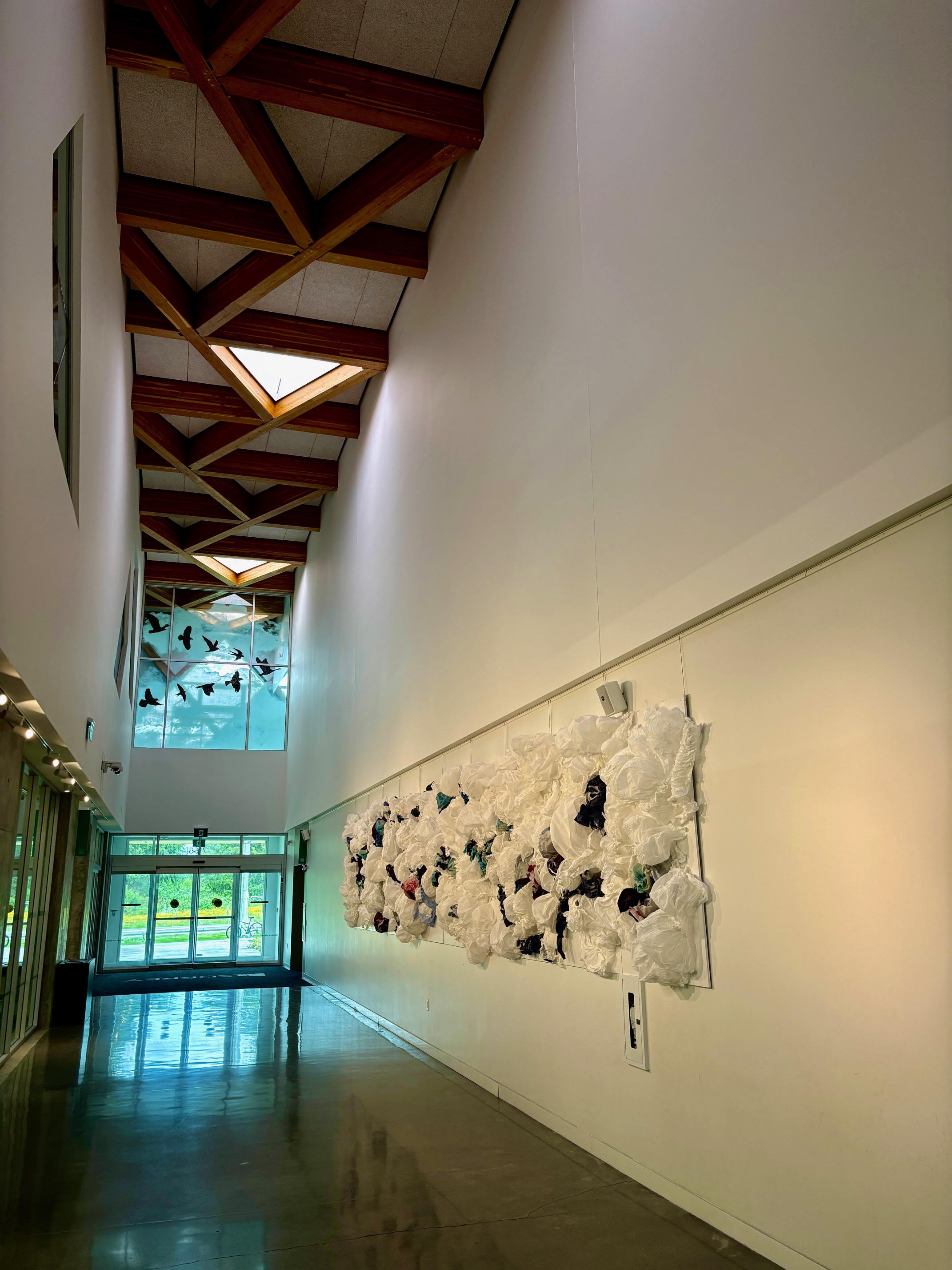 Inspired by the children’s book by the same name, this artist residency takes advantage of lightweight textiles and simple sculpting by workshop participants to create “cloud formations”. These whimsical pieces were assembled into a large indoor 3D mural installed in Clayton Community Centre in Surrey, BC in the spring of 2024. Cheesecloth and old City of Surrey street banners were reused to create elaborate textures in this location.